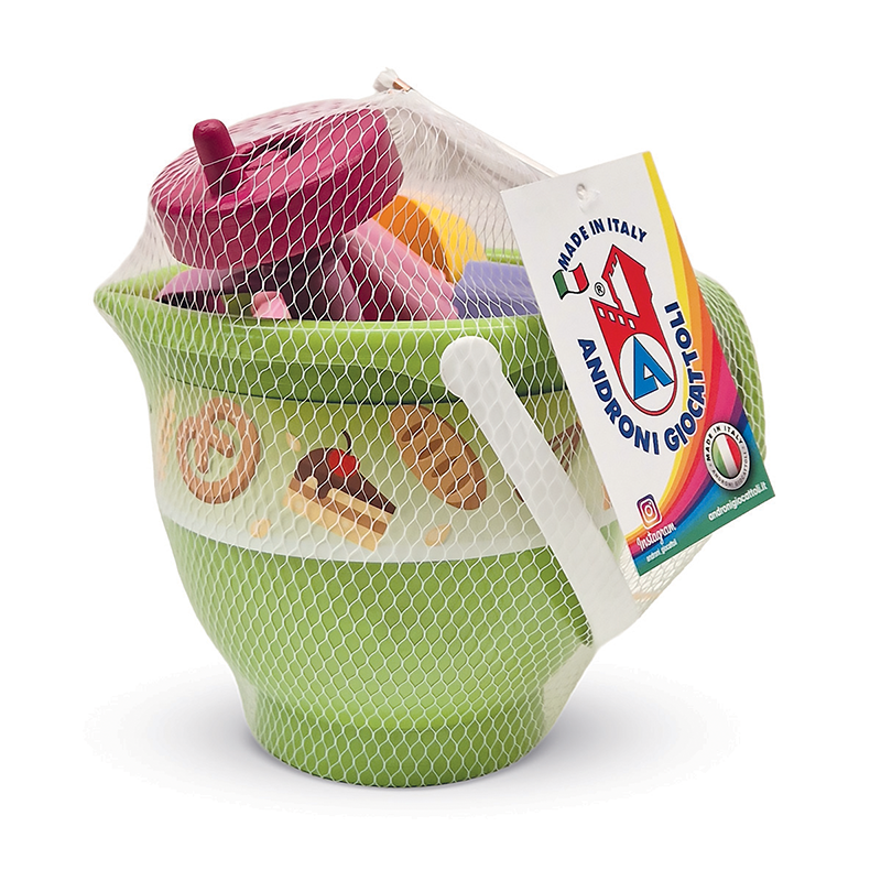 Sada obsahuje: Nádobu na míchání, zmrzlinářskou naběračku, formu na dortík ze 2 dílů, tři tvořítka (koláč, bábovka, croissant a také novou metlu. Díky ní jde o nevšední hračku, s novým nápadem ke hrám na pískovišti.