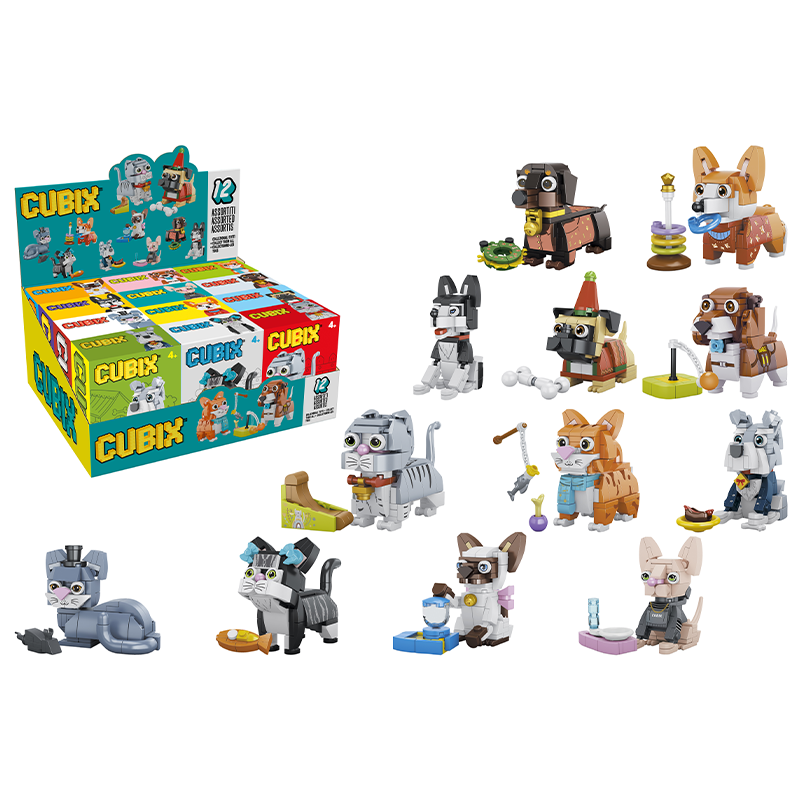 Hledáte zábavnou a kreativní stavebnici pro děti se zvířecím motivem? Cubix Pejsci a kočičky je kostičková stavebnice, která potěší všechny malé milovníky domácích mazlíčků. Děti si z barevných dílků postaví roztomilého pejska nebo kočičku a zároveň si procvičí jemnou motoriku, trpělivost i představivost.