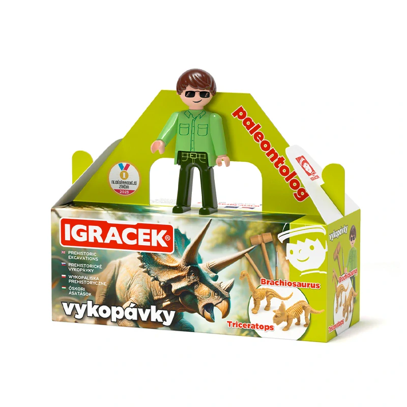 Děti milují dinosaury a překvapení. Proto jsme pro ně připravili dobrodružnou řadu Igráčků s vykopávkami koster dinosaurů. V tomto setu budou děti s Igráčkem Paleontologem z kamenů vysekávat kostru Triceratopse a Brachiosaura. Při zábavné činnosti si procvičí jemnou motoriku i trpělivost. Odměnou jim bude vzácný nález.