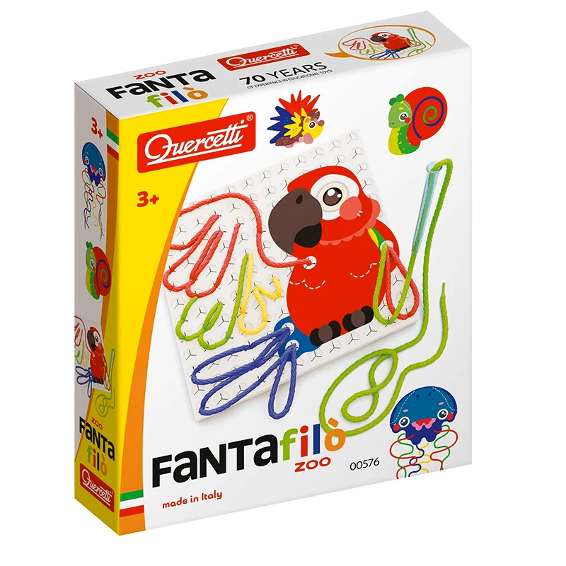 Vyšívací souprava určená dětem od 3 let. Sada obsahuje 8 šňůrek ve čtyřech základních barvách, 1 speciální pero určené k vyšívání, perforovanou desku, brožuru s předlohami a další 4 karty s předlohami, kterými se začátečníci mohou řídit. Obrázky se tvoří zasouváním šňůrek pomocí speciálního pera do otvorů hrací desky. Po nadzvednutí pera se otvor zatáhne a barevnou šňůrku pevně drží. Práce se soupravou Fantafilò pomáhá dětem uvolnit zápěstí, zlepšit vizuomotorickou koordinaci, jemnou motoriku a rozvíjí kreativitu.