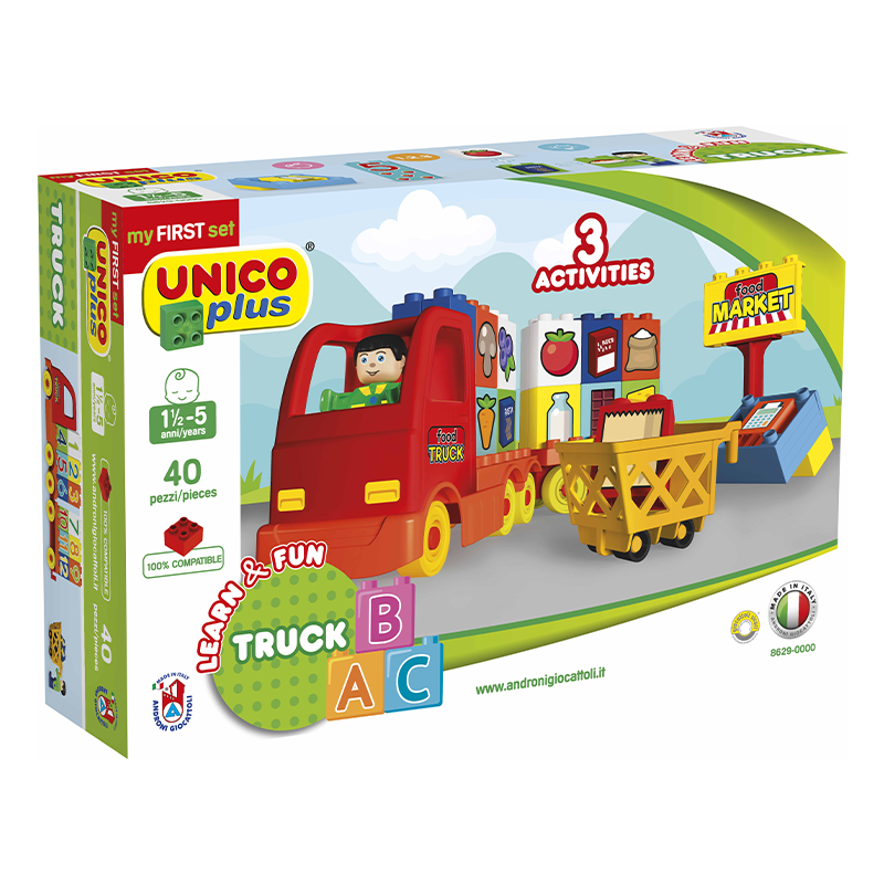 V této krabici kompatibilní kostičkové stavebnice UNICO plus děti objeví kamion pro předškoláky, plný lákavého jídla. Při hře s touto sadou si mohou krom kreativity procvičit i jednoduché recepty, první počítání a nakupování.